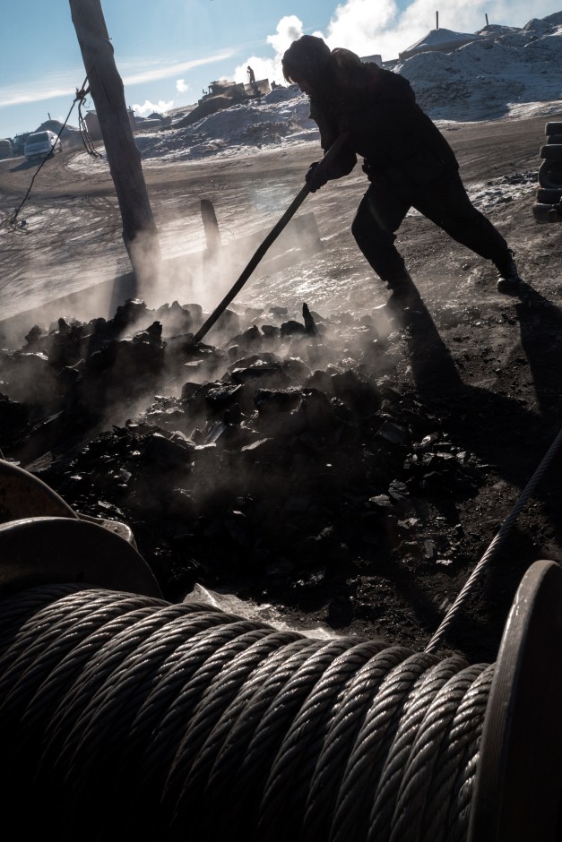 The site counts about 100 interconnected tunnels with some going down to 200 meters below the surface, where 4 miners extract 30 trays of coal on 2 shifts of 12 hours, only during the winter season and at great risk to their lives. This cheap and unrefined charcoal is then sold to the thousands of families in the Ger districts who can only afford it for heating and cooking in the coldest capital in the world. As coal is ubiquitous in Mongolia, it produces 95% of its electricity but contributes to 60% of Ulaanbaatar deadly air pollution. It’s a complex issue and the largest single challenge in Mongolia that links incomes, access to energy, air pollution, work opportunities, urban migration and the fate of nomadic life.