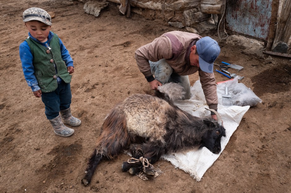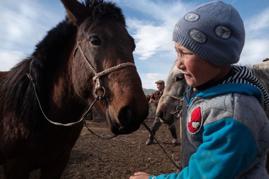 The rural exodus has been affecting them like in the rest of the country, especially after 1990 when the country left communism, introducing in 1992 a new constitution with a multiparty system and market economy. This political and economical change reduced drastically the incomes from herding, putting under pressure their nomadic practices and simple things like access to education (more than 60% of nomad’s children attend boarding schools as the only possibility for schooling) and financing the purchase of fodder for the winter. The need for money pushed many herders to favour the breeding of goats for a more profitable cashmere and a revival of an ancient eagle hunting tradition for the growing flow of tourists – mostly instagrammers seeking fame.
