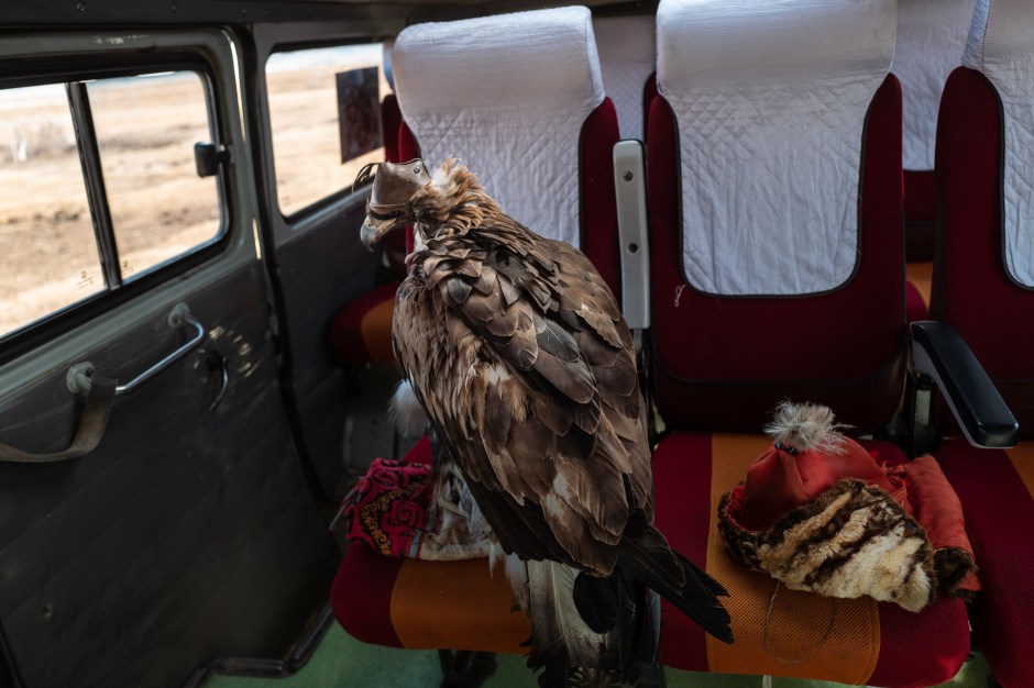 Eagle hunting is nevertheless an ancient form of training within Kazakh communities and it is part of the traditional games testing the skills of the trainers and the quality of the relationship between a horse launched at full speed and its rider catching objects on the ground or between an eagle controlled by its trainer to kill an elusive rabbit. As the trainers say, eagle hunting is not an hunting technique but a symbolic practice of relating to the sky. During the few years (maximum 5 years before freeing the eagle) that they train their female bird, they sharpen their own perception by observing the development of the eagle’s instinct. It is similar to an initiation to new affordances, driving the trainer into becoming a better hunter for his family during the harsh winter.